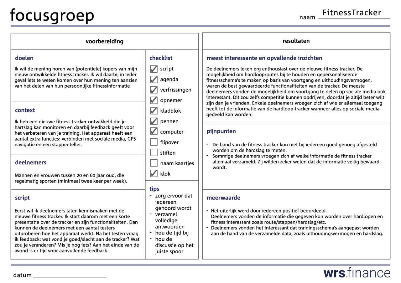 Schrijf na afloop van de Focusgroep de meest interessante en opvallende resultaten in het Focusgroep formulier.